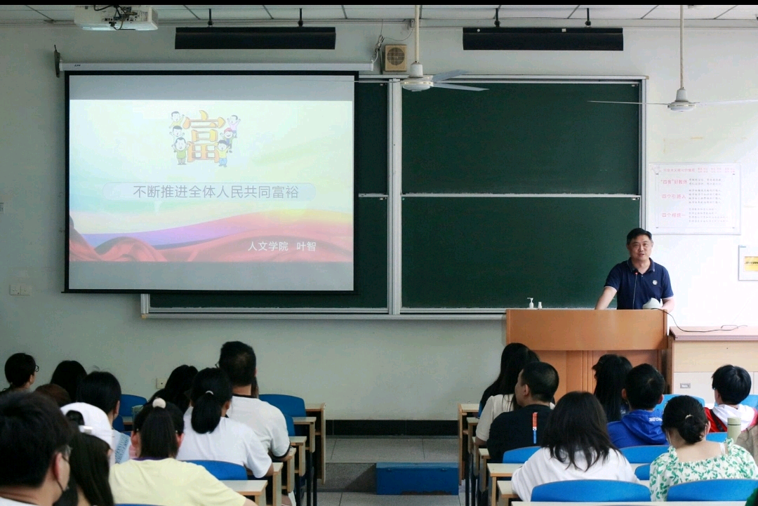 6月8日下午,公司党委副书记叶智于东十二楼104教室为大家讲授了主题为“不断推进全体人民共同富裕”的党课。21级辅导员王勇和全体21级本科员工共同学习了本次党课。