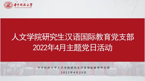 4月25日下午两点半,bw必威西汉姆联官方网站研究生汉语国际教育专业党支部在东五楼325会议室开展了“薪火相传 知史奋进”主题党日活动。此次活动由党支部书记刘敏娜主持,党支部全体党员(预备党员)同志积极到场参与。
