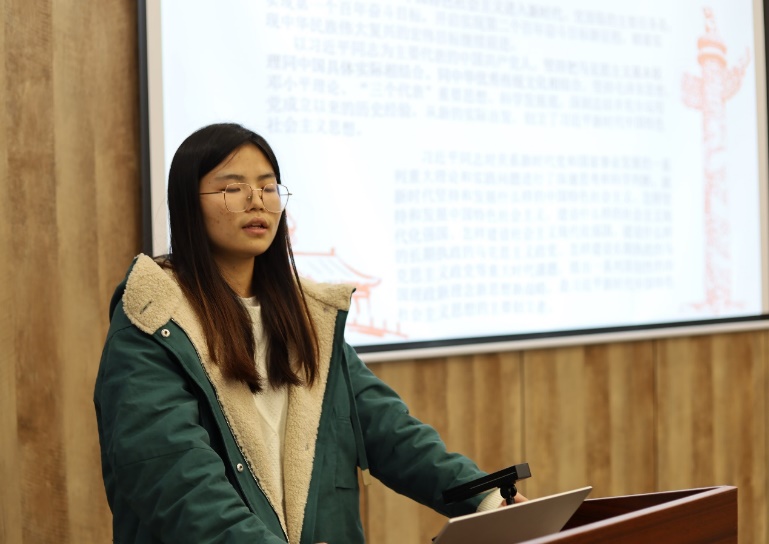 最后,党委副书记叶智为本科生党支部讲授了微党课。他表示,同学们参与活动的积极性,努力学习党史知识的精神面貌让他回忆起了自己的入党经历。叶书记从自己入党的经历讲起,为大家详细介绍了自己当年为什么入党、为入党作出了哪些行动上的表现,在积极服务同学中收获了大家的认可。接着,叶书记从认清国家大趋势、融入社会大环境、树立个人大梦想三个“大”的角度对同学提出了要求,他强调同学们要充分认识国际国内发展大势,充分认清现阶段的情况,发挥自身优势,将个人价值融入社会发展大环境中,通过树立个人梦想,激发专业优势,切实服务群众,巩固四个意识,为社会做出自己贡献。叶书记提到,人文学子要敢于树立远大“中国梦”,中国梦是全国各族人民的共同理想,也是青年一代应该牢固树立的远大理想。中国特色社会主义是我们党带领人民历经千辛万苦找到的实现中国梦的正确道路,也是广大青年应该牢固确立的人生信念。因此,理想和梦想不仅要树立,而且要在心中扎根,一辈子都能坚持为之奋斗,这样的青年才是党、国家、人民所需要的,他鼓励同学们要在时代大潮中建功立业,成就自己的宝贵人生。