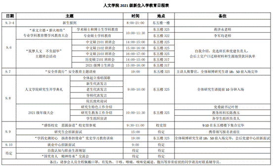 在大家的共同努力下,迎新活动顺利结束,94名硕博新生全部完成报到,自本周起将开展新生入学教育(新生入学教育日程表见下图)。新起点,新征程,愿大家都能以梦为马,不负韶华,迎接更美好的未来。