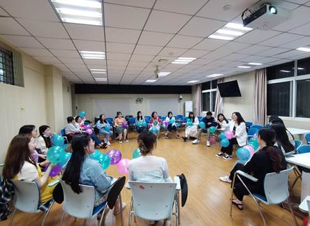 紧接着进入主题活动——和压力说Bye Bye,社工将气球发放到参与同学手中,不同颜色气球分别对应不同类别压力。参与同学将压力写在不同颜色气球上,交流困惑,同行同学给出建议,并一同将气球击破,排解自身压力。