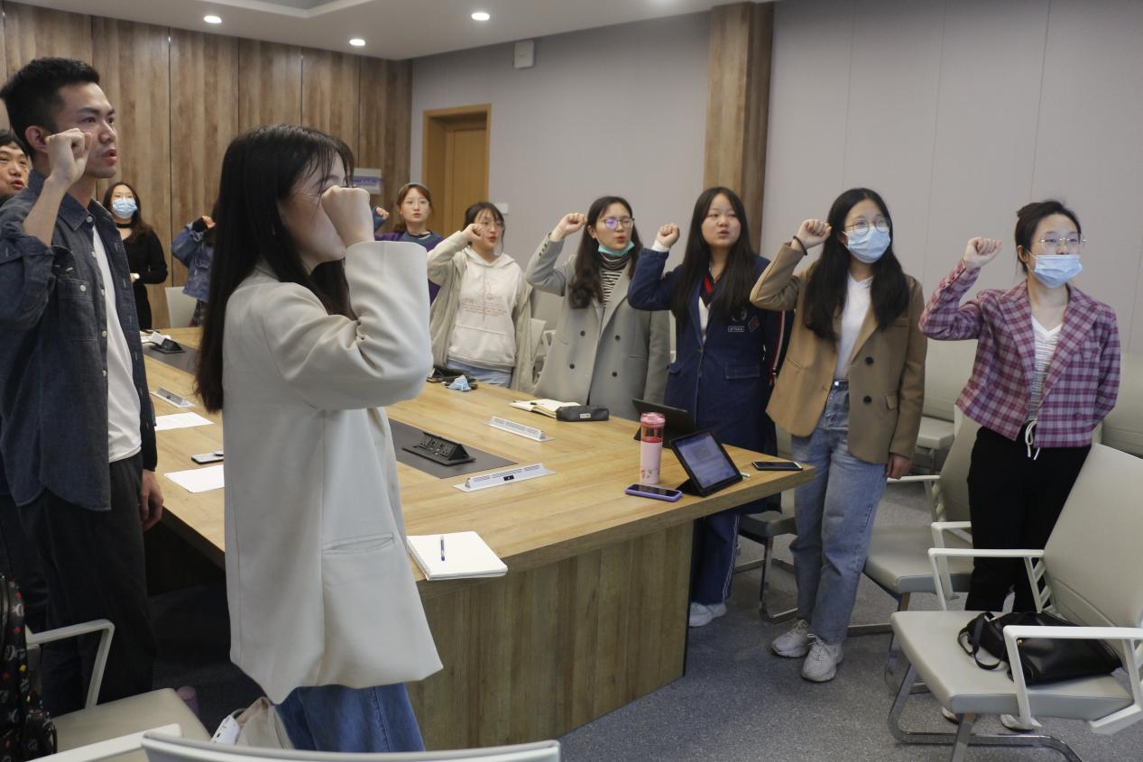 就业中心副主任、公司本科生就业助理孙建奇带领中心的全体成员宣誓。“我决心本着“全心全意为同学服务”的宗旨,遵守中心制度章程,严于律己,团结协作,认真工作,积极为同学提供有益就业指导和服务......”在掷地有声的誓言中,全体成员再次坚定了自己工作的初心和使命。