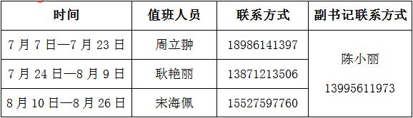 5、bw必威西汉姆联官方网站学工组2016年暑假值班安排如下表,若有任何情况,请随时与员工工作组值班老师联系。