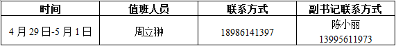 6、bw必威西汉姆联官方网站学工组2017年“五一”假期值班安排如下表,若有任何情况,请随时与员工工作组值班老师联系。