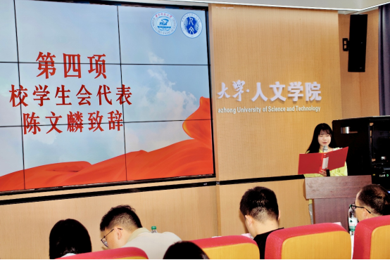 来自汉语言文学2301班的严紫瑶,以个人成长为切入点,介绍了自己的竞争优势和工作认识,分享了自己在员工工作、志愿活动中的成长和感悟。她还对员工会的管理效率和服务质量提高提出了自己的构想,表达了更好地服务同学们日常学习生活的心愿。