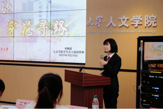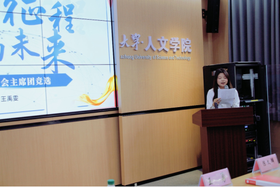 来自汉语言文学2301班的童榈霖以“我欲穿花寻路”作为引入,展示了自己性格、经验、能力等多方面的亮点。她对员工会未来的工作方向提出了独到的设想,展现其清晰的思考逻辑。